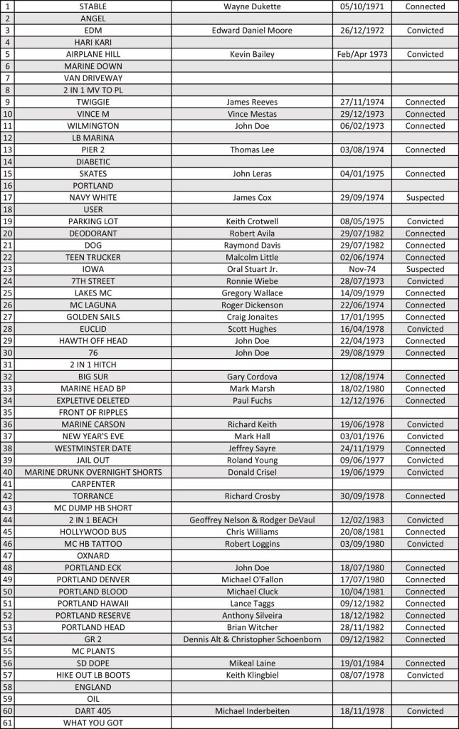 An interesting list of victims, but what do the numbers and words in the two left hand columns stand for? Your link is in Spanish, and does not contain this chart.