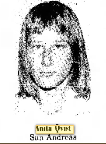 Her brother died recently (2014) and his obituary made it sound like Anita was alive. From her brother's obituary it says he was "born in San Francisco, raised in Pacifica and attended Pacific Manor, San Andreas and Oceana High schools." If anyone has classmates/yearbook access you might want to check those schools for any additional photos of Anita.