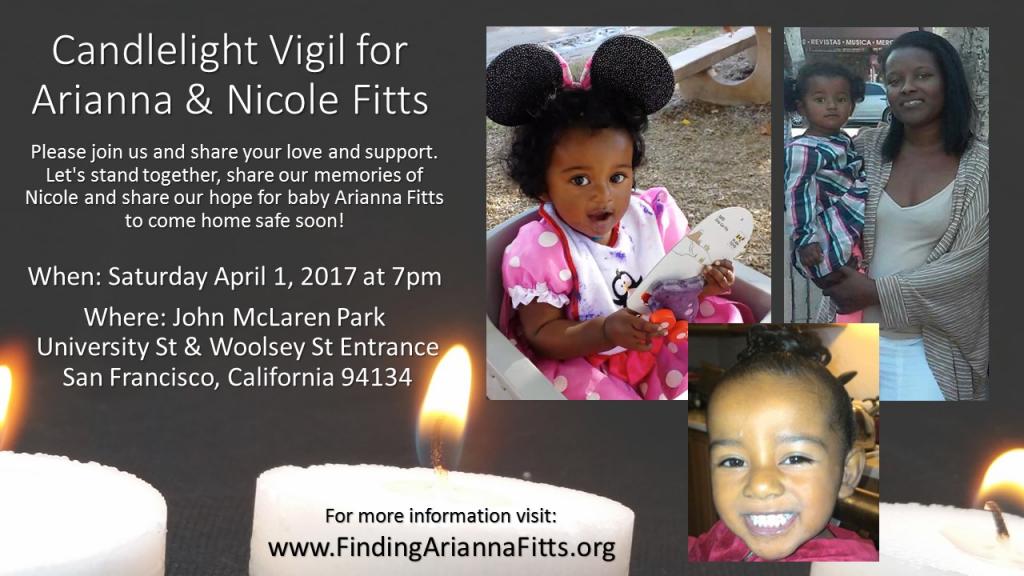 Her family is holding a Candlelight Vigil for Arianna Fitts this Saturday at 7pm at John McLaren Park, near the University St and Woolsey St Entrance in San Francisco - All are invited to light up the night with hope!