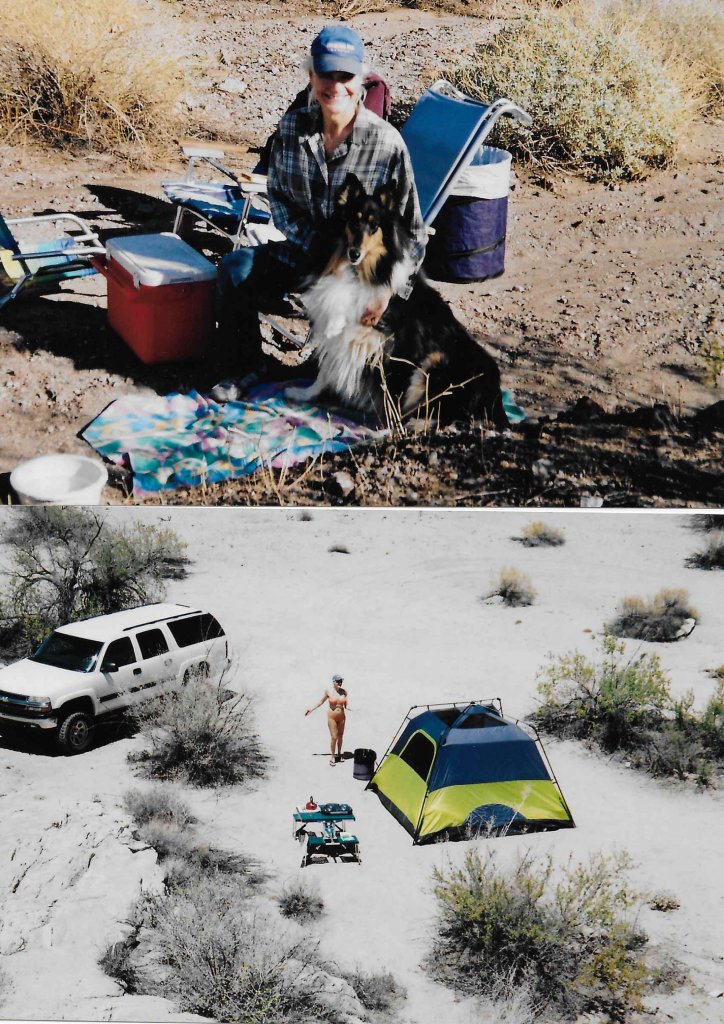 e) The photo might be on the older end (circa 2002) because they don’t have their RV yet? On trips when they had to pitch a tent and prepare food outside, how far might Barbara hike?