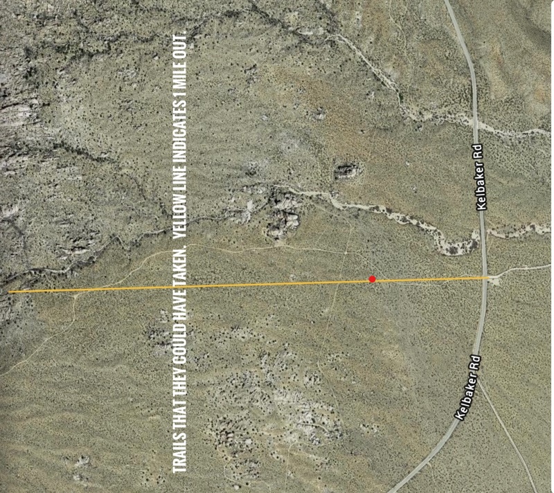 Pardon me if I missed it, but has there been any discussion of footprints? That sandy desert terrain should show footprints fairly well, though maybe not very distinctively, especially if anyone went off trail.
