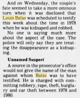 Balas was scheduled to testify last Monday against Boyce, who was ordered back to jail Thursday when prosecutors complained that his freedom on $110,000 bail -- in light of the Balas' disappearance -- was frightening other witnesses.