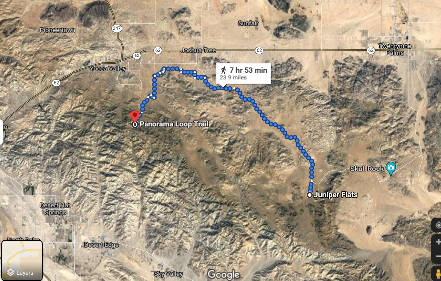 Here's a map of where Bill's car was found (Juniper Flats) and the approximate area where the unidentified remains were found Jan 16th (Desert View Conservation Area): Google Maps