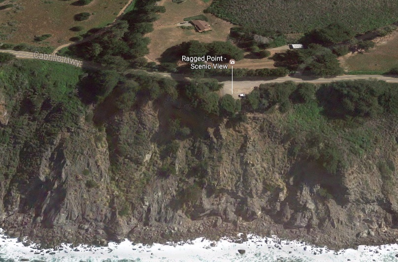 There are three "Ragged Points" in the area. The northern one is Cal Poly Ragged Point Biological Sciences. The middle one is Ragged Point Inn and Resort. The southern one is Ragged Point Scenic View Parking Lot. They went over the cliff at the Scenic View Parking Lot.