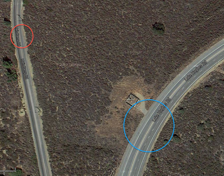 But the area on Lake Hughes Rd by the cell tower (Blue Circle) where he went down from - is that no longer a 3 lane road wide enough for a U-Turn?