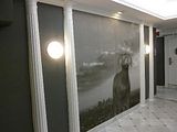 In this video, around the 2:56 mark, note the mural on the wall opposite the elevators.