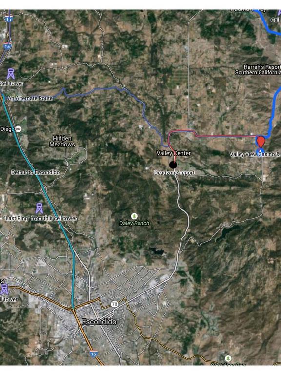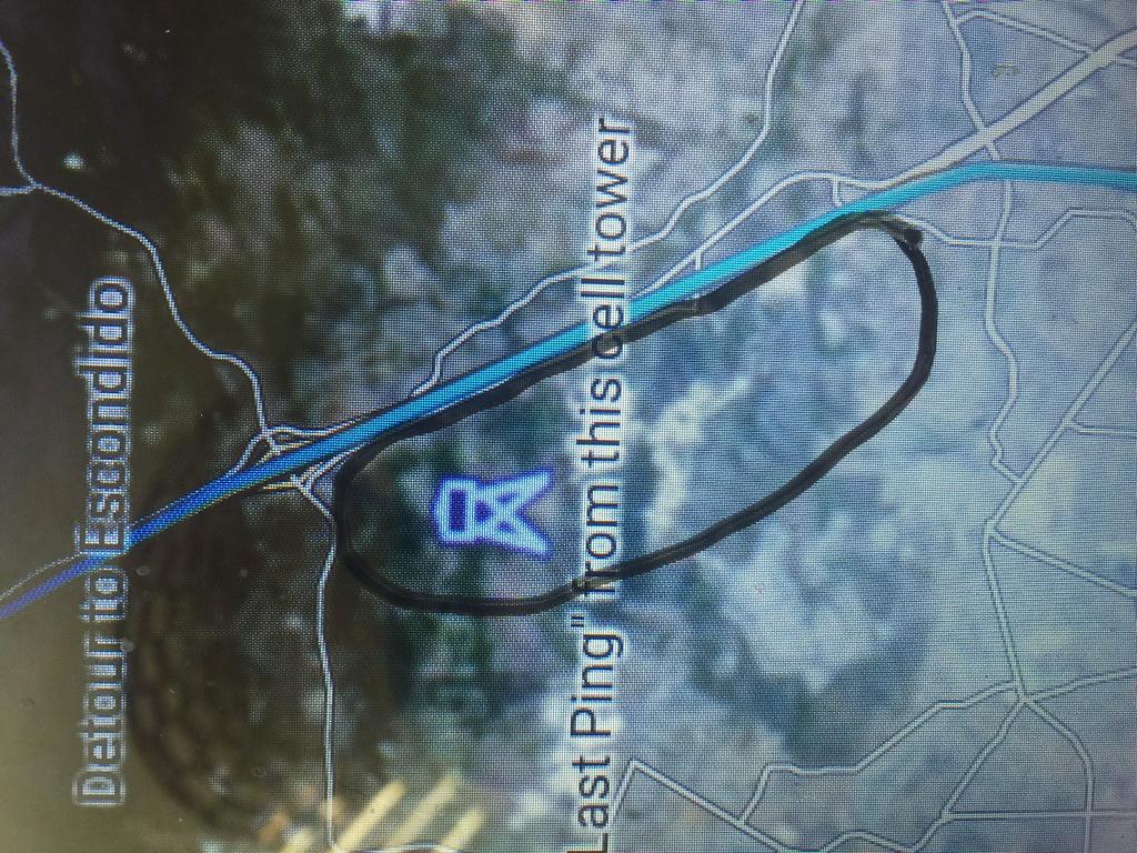 You our are both amazing. Thank you for jumping in and providing your map expertise. Looking at the updated version of your map (thank you for satellite view), I wonder if in fact it would be about 15 minutes by the time they reached the dead zone. It seems it would actually be 9-10... But what if dad was struggling so they switched seats and mom was at the wheel? That would explain her phone being turned off, the unexpected direction towards perhaps a hospital, and a nervous driver behind the wheel. Dad's phone no longer providing a signal makes sense to the dead zone, and if they did end up on the roof it explains no gps signal from the car.