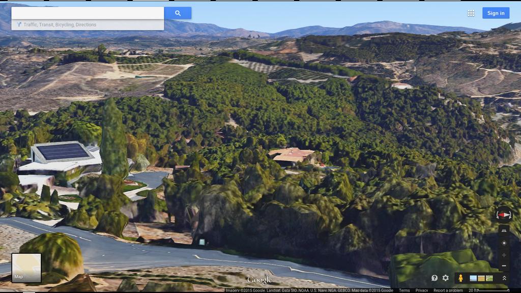A Bing map bird's eye map of the area