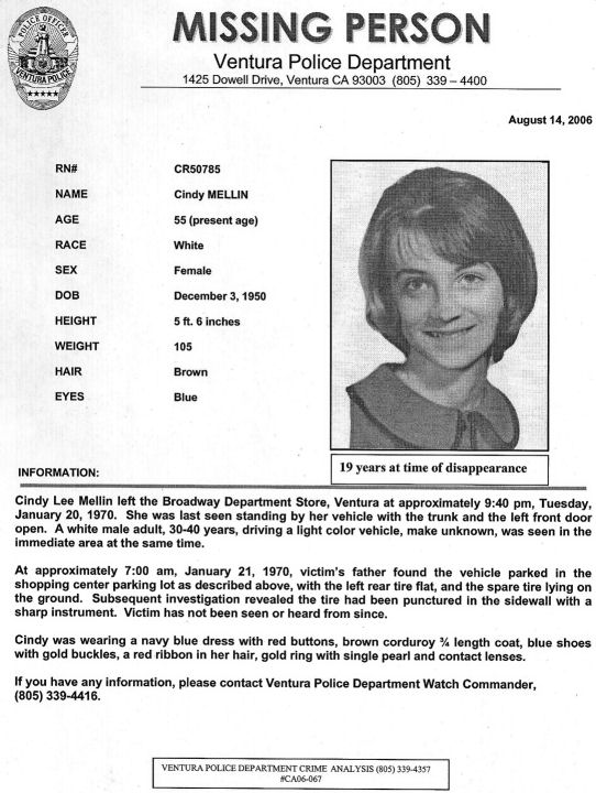 Bumping for Cindy Lee Mellin; despite the distance between Hayward and Ventura , I think it's possible that Cindy and Christine Marie Eastin met their fates at the hands of the same monster.
