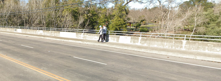 You can also see on Google Maps when you go to the street view that if she was walking back home going west over the bridge that the people in this photo are going the same way across. She was not very tall so it seems somewhat hard for me to believe she fell off the bridge after seeing how it goes up in perspective of these two people in the photo. You would have to purposely climb and jump or be thrown but I don't see how you could just accidentally fall off especially at her height. I am also very suspect of the homeless man she was with, not because he was homeless but simply because he was recently let out of prison and we do not know what he was in there for but if her last sighting is with him this would certainly be a concern.