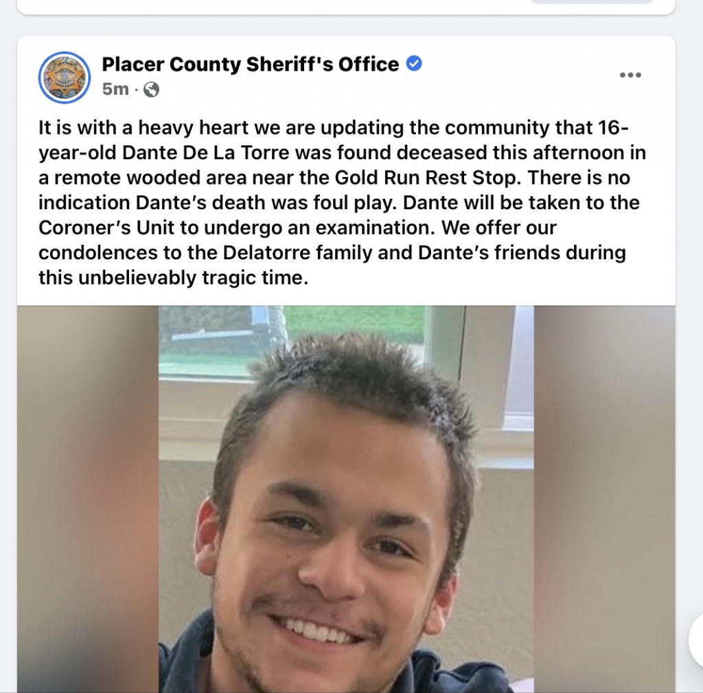 It looks to me that he goes to Colfax High School. Here’s the schedule. I couldn’t quite figure it out.Placer Union High school calendar doesn't mention this week as early dismissal (we have 1pm early dismissal for kids this week in a different district) so it's interesting he'd be off doing a school project at 1230pm on a Wednesday.
