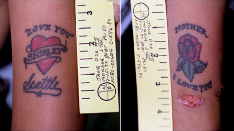 I'm at a bit of a loss as to what Seattle would represent. The first thing that came to mind was perhaps an unofficial marriage in Seattle to a woman named Shirley? or perhaps they met there? Or as mentioned in a previous comment this could represent the birth place of a daughter named Shirley. The Seattle part kind of almost rules out Shirley being her mother's name because I just can't think of why you'd place Seattle in such a way on a tattoo for your mother. Although, one interesting note is that one of the obituaries for a Shirley Ochoa mentions that her family was a military family and they moved all over the country so. that did pique my interest a bit and would kind of make sense - as if Seattle was a special place they lived or something memorable happened there.