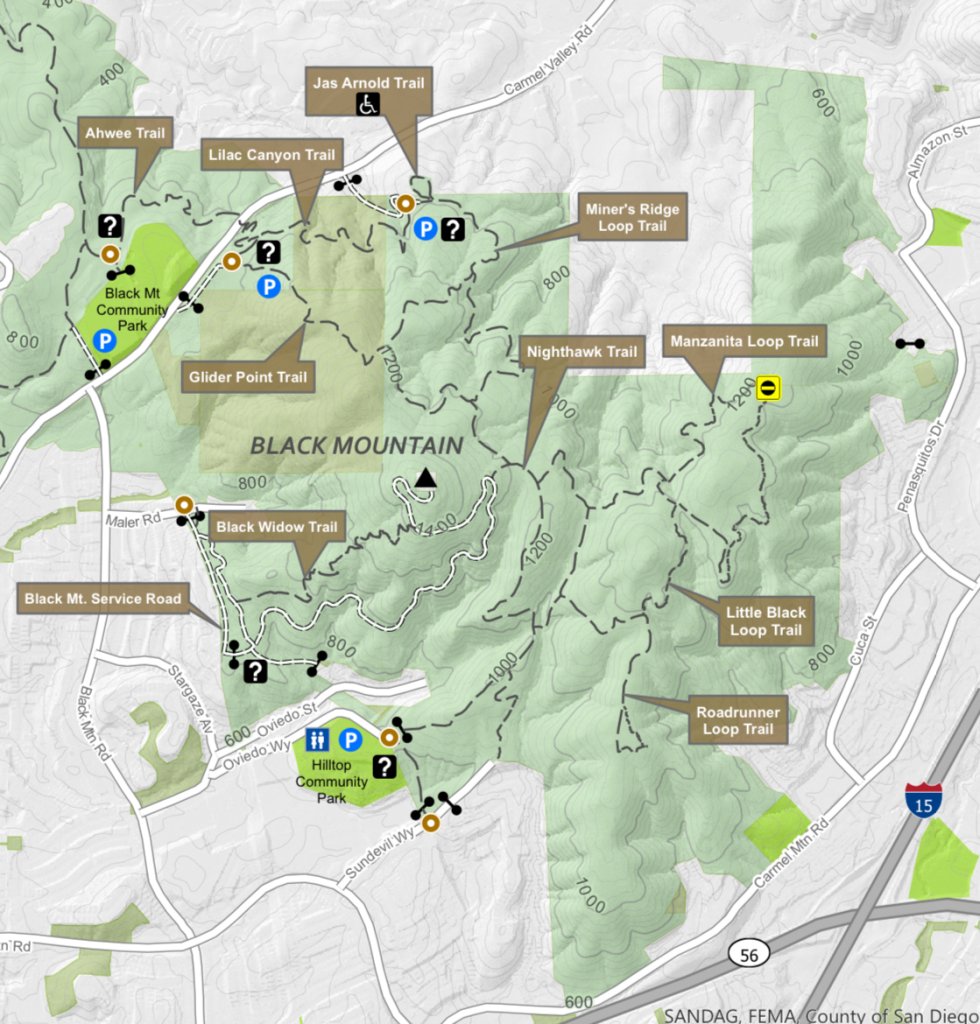 The more southern bifurcation heads towards the parking lot where presumably her vehicle and everyone else's were. That trail is called the Nighthawk Trail. It looks to be a bit shorter than Black Mountain Trail,