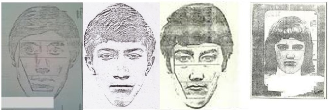 These are superimpositions of the sketch I prefer and the only sketches known to be of the killer I did on photoshop: