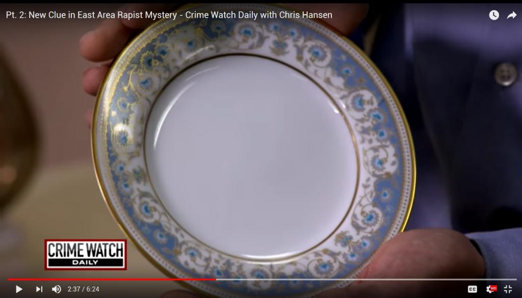 A few days ago, my mother and I were talking about the case, and about the numerous items EAR/ONS stole from his victims. She was puzzled about the Noritake china, and why a young man would want that, or let alone, even know what it was back in the day. She related how it was so revered in the 70's as it was a popular china that you would give as a wedding gift, mother's day gift, or a birthday present for a female. She said at the time, it was so popular and known to be extremely expensive for just one set. She wondered if he stole more than one set, and if so, how he carried them away. I told her that a lot of the items he stole were trophies to keep, but the Noritake china set was something more than that–possibly a personal/emotional connection to it. He not only knew of the brand and value of the china, but had used it before in his personal life. Because of this, I stated to her that EAR/ONS probably never gave it away as a gift or sold it. But overall, I told her, next to his DNA, the Noritake china set is the biggest clue in this case as I then told my mom EAR/ONS could have come from an upscale or wealthy family that used this brand of china more frequently than just for special occasions and holidays.