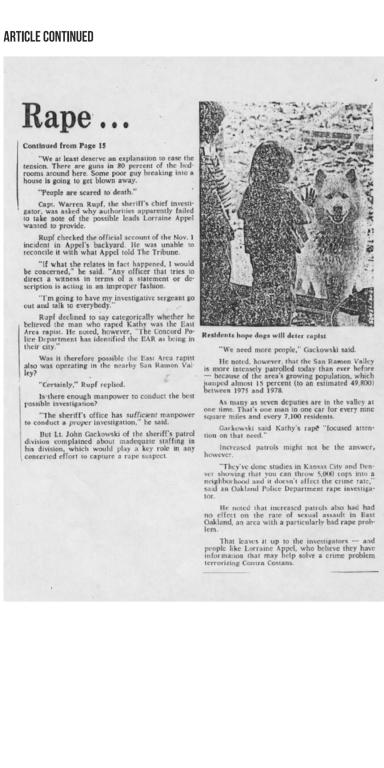 A 1993 Sacramento Bee story detailed how even the lead investigators in the case had to provide saliva samples because the public had begun to believe that a rogue cop was committing these crimes while being protected by his fellow officers.