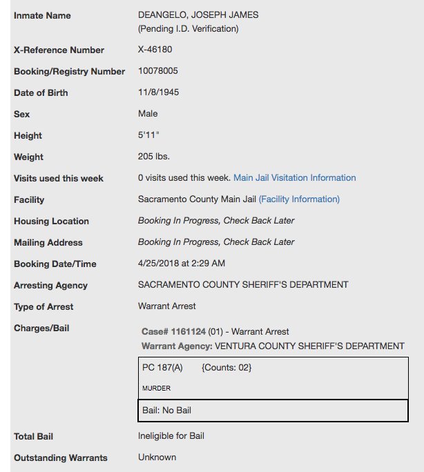 One question: why has the moniker Original Night Stalker fallen away? I haven't followed the day to day details of the case, so it has been a bit confusing after seeing ONS/EAR over the years.