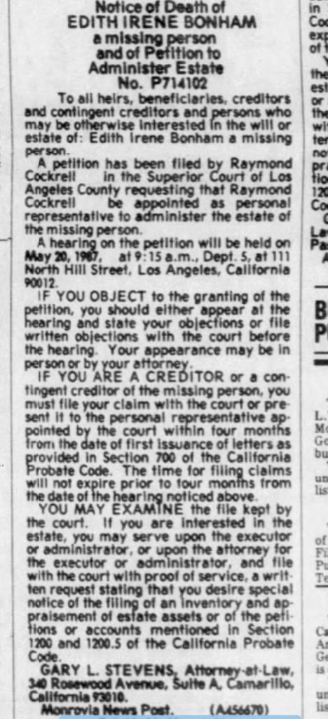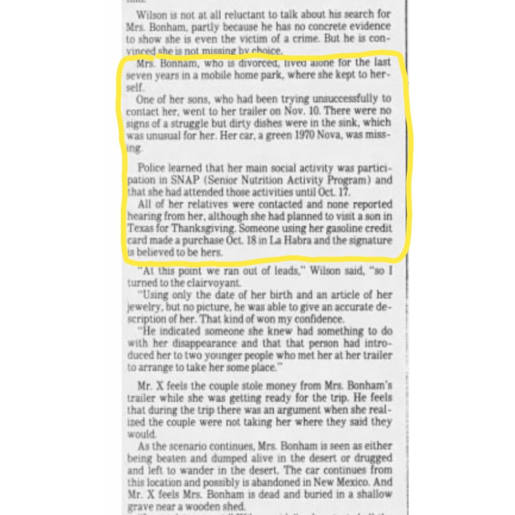 Location where the skull was found is far from La Habra, her potential last location not too far from Monrovia, where she lived. So who knows?