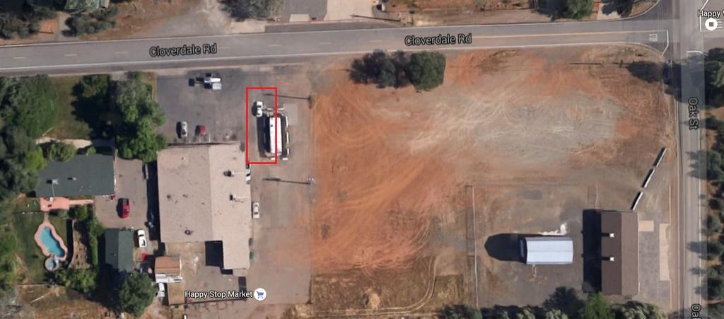 This is the Happy Stop Market. Matthew was parked somewhere in the red box, farther up than the white truck shown in my image