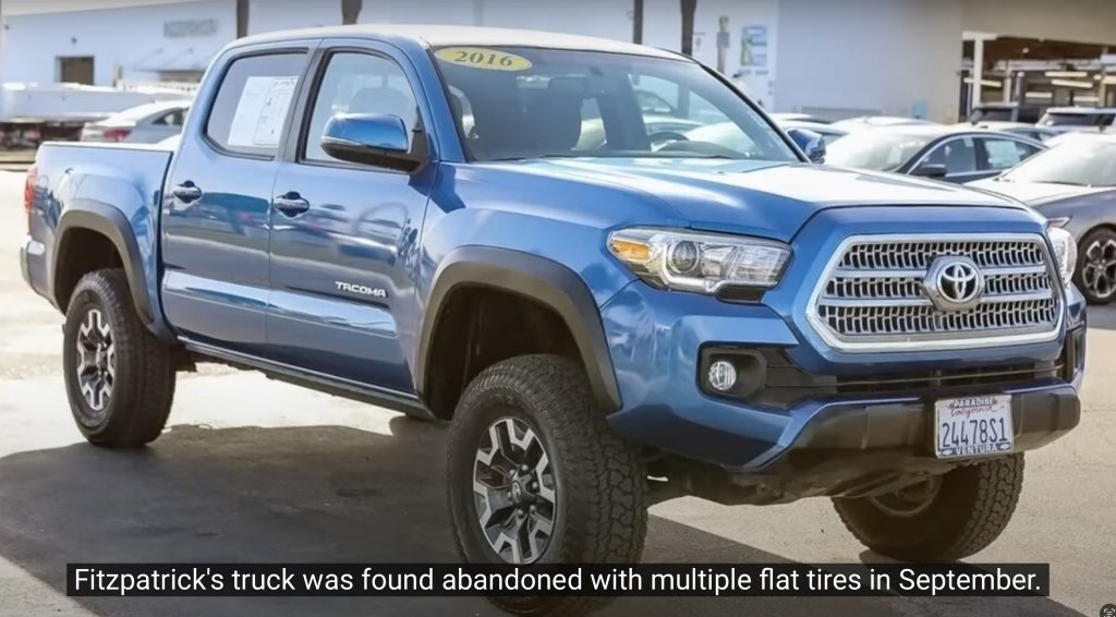 It does confirm that the truck was a 2016 model, so 7-8 years old, which I think we already knew. Also, there's no decal on the side of the bed. My understanding is that all Tacoma 4WDs either have a decal or a 4x4 badge on the tailgate. We did see a shot of the back in the missing poster and the only badge said "V6".