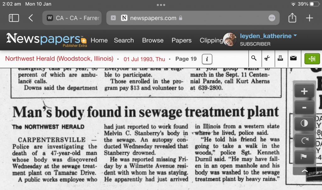 Circumstantial evidence shows that relationships between Farren and his Mother were strained at best, and horrible at best. I posted that it is very possible that his Mother had Farren when she was very young, considering the age of Farren's grandmother at the time he went missing. We are looking at Farren in a relationship with two woman Farren's grandmother (presumably Mom's Mother) and Farren's Aunt (presumably Mom's sister) over a period of many years.