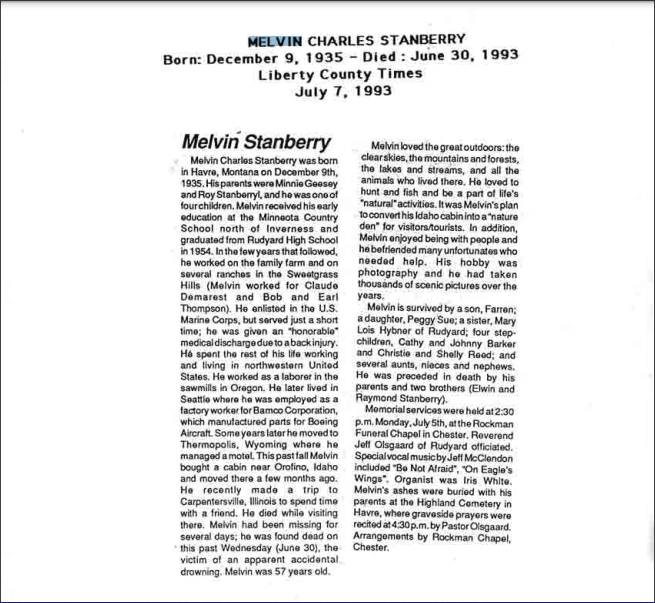 I am so happy you posted this! Just reading this now! Please read this everyone! (I am also going to save this.) It shows a different, loving, caring side of Farren's Dad, Melvin, who enjoyed helping people and living as a part of nature and interacting with it in a beautiful way! I think this is VERY RELEVANT, because it shows a lot of Farren's personality in Melvin. The fact that he was so much more than some "Mountain Man" speaks volumes!