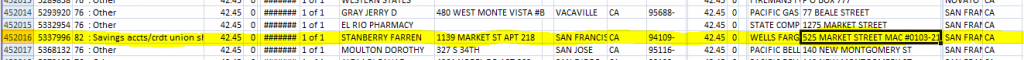 I also thought I had found Farren's bank's address but this was Wells Fargo HQ as well as a bank so it may have been, but it also may not...