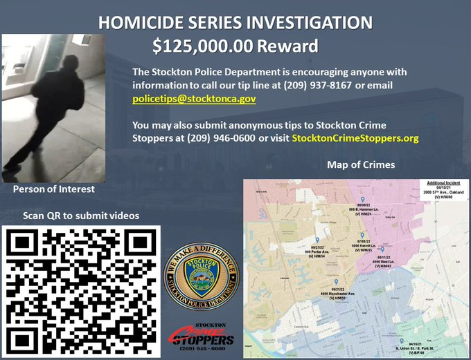 CA - Five unprovoked murders of men ages 21 to 54, Stockton, July-Sept 2022 *Reward*