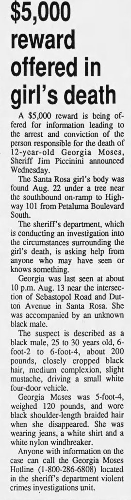 July 23 '24 https://mendofever.com/2024/07/23/cloverdale-police-department-arrests-suspect-in-decades-old-murder-case-of-13-year-old-girl/ ''The Cloverdale Police Department has announced a major breakthrough in the decades-old Sarah Geer murder case, bringing closure to a tragic event that has...