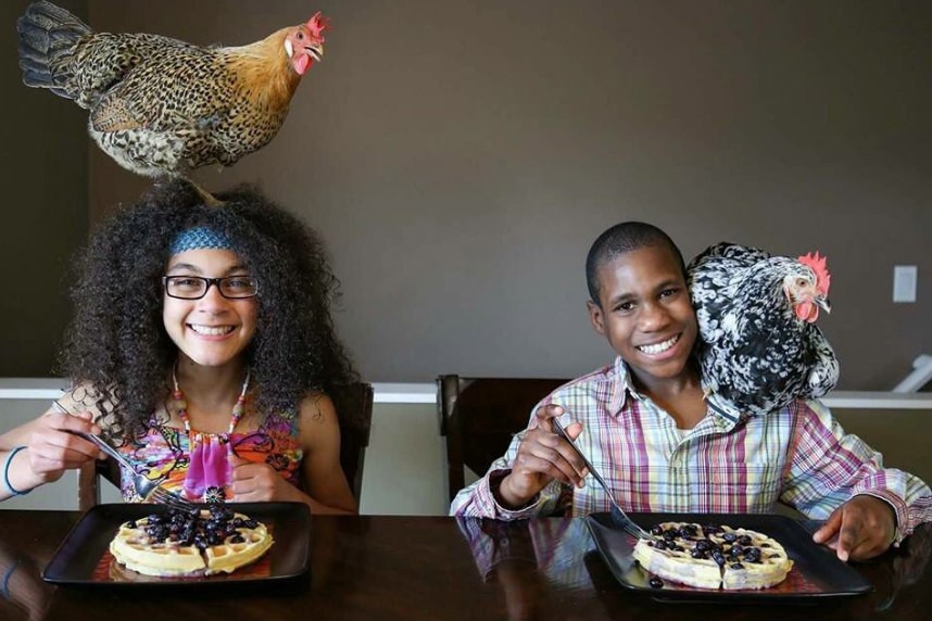 Ugh, super-posed. The photographer literally had to place the chickens there. (I know chickens.) Did the kids even get to eat those waffles?