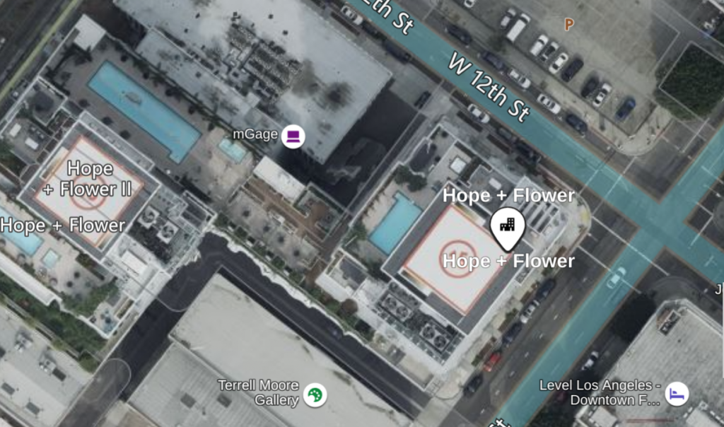 The link's to an aerial shot of the Hope Bldg. with the helipad painted symbol on the roof. Can't tell a difference between the items on ground level as they are too far away.