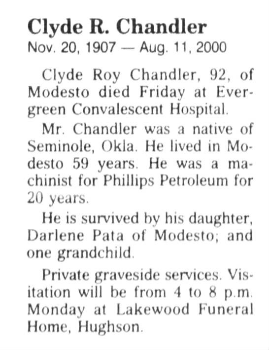 She was last seen in Modesto, California on September 13, 1974 shortly after withdrawing almost $9,000 from her bank. She has never been seen again.