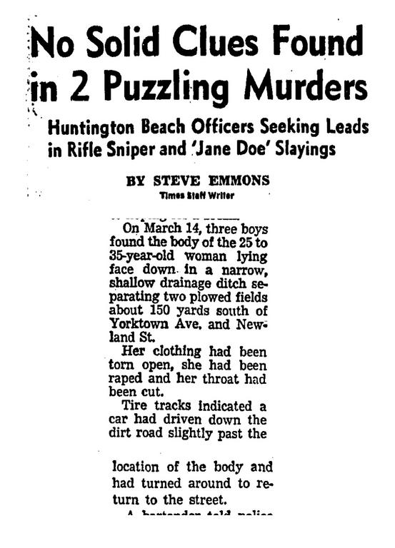 In an old Los Angeles Times article, dated April 16, 1972, entitled "John Doe: He Can Leave a Path That's Hard to Follow" primarily about an UID found on New Years Day 1972 in Anaheim https://identifyus.org/en/cases/7647, there is some information about this UID from Huntington Beach as well.