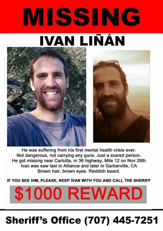 Last night at 8PM, deputies responded to the Carlotta area on Highway 36 where Ivan Linan of Spain had been riding in a vehicle, when he demanded to get out.