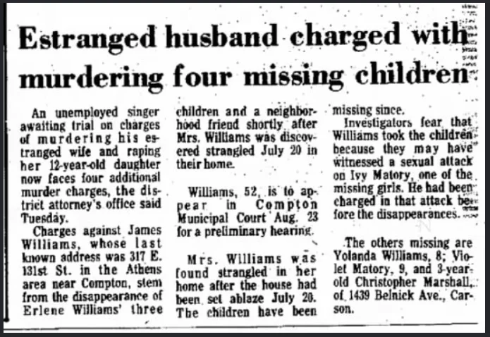 Ivy Matory – The Charley ProjectIn 2014, Ivy's skeletal remains were found in Corona, California, about an hour's drive east of Compton. The other children have never been located.
