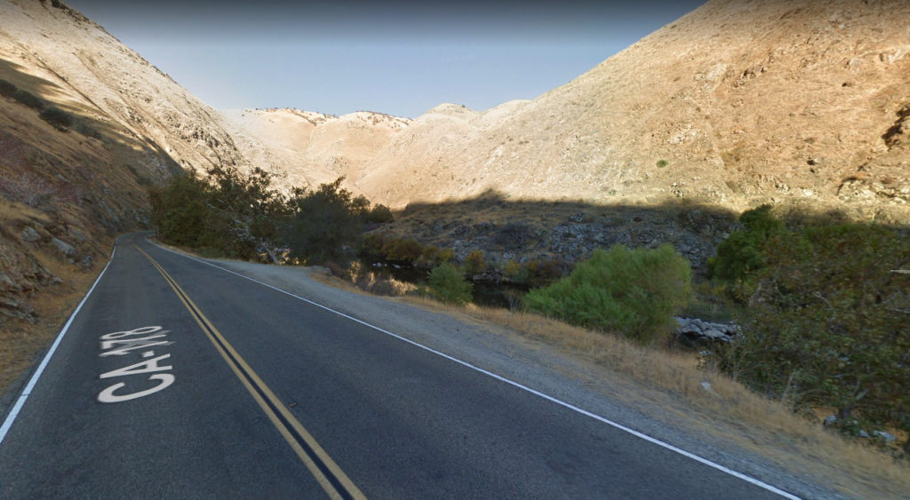 Multiples theories in the past weeks about what might have happened. I didn't think an accident resulting in the disappearance of his SUV was likely since I thought Bakersfield was flat farmland. Lazy on my part since Bakersfield is at the base of the Sierra Nevada Mountains. Attached is an image along Kern Canyon Road in the approximate area where the SUV and body were found. Pretty rugged country and no guardrails along large stretches of the road next to the river.