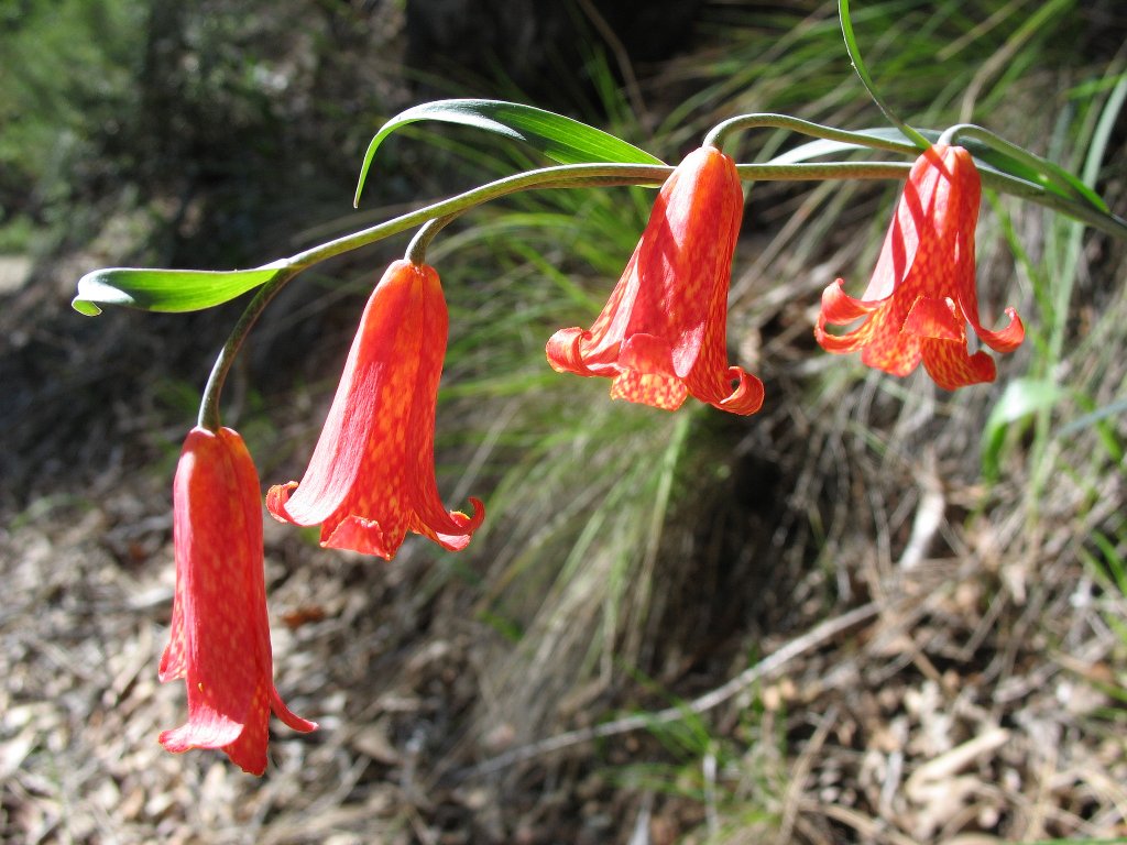 People hike for different reasons, there is no right reason, it's whatever motivates you. For some it's all about the exercise, going as far and as fast as they can. The other extreme is birders, they like to hike to a good area and stand quietly with their binoculars, observing birds and recording what they see. My wife and I like to get exercise, but we also like to see something beautiful or interesting like wildflowers, waterfalls, or tidepools, and we like to have fun. Fellowship is important to us too, we made a lot of really good friends thru hiking. The loop hike is one of the toughest in that area, that may have been the attraction for JG-EC. It would only be interesting to us in wildflower season, when there's something to see besides burned trees and the temperatures are tolerable. Here's a Scarlet Fritillary, we do some hikes just to see them.