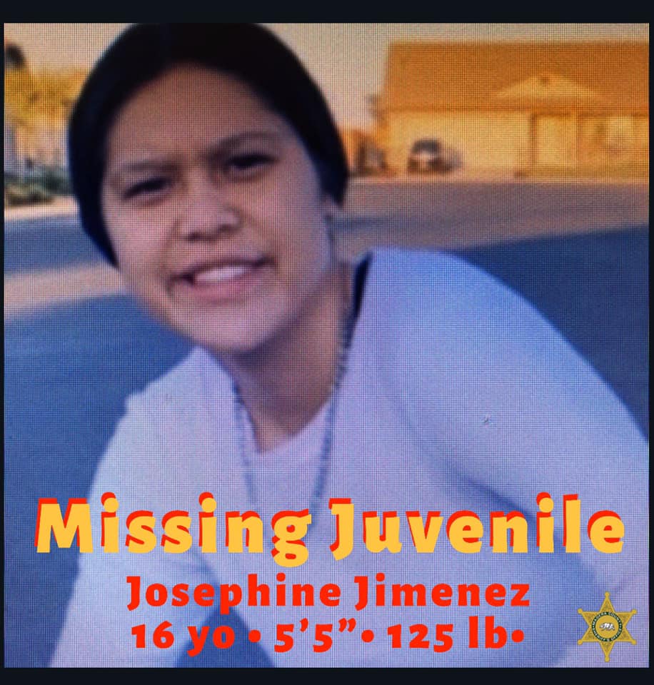 Josephine is a 16 year old Hispanic female juvenile, with brown hair and brown eyes, 5’5” tall, and 125 pounds. If anyone has information relating to this case or Josephine’s whereabouts, please contact the Madera County Sheriff’s Detective Padgett at (559) 474-2302 or the main office at (559) 675-7770. If you see Josephine, please call 911.