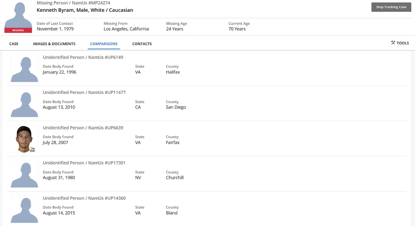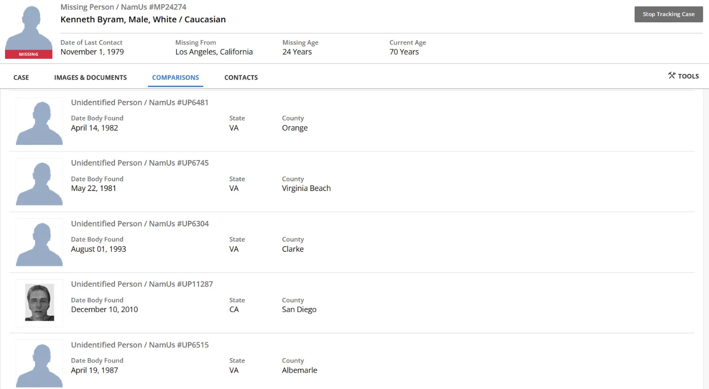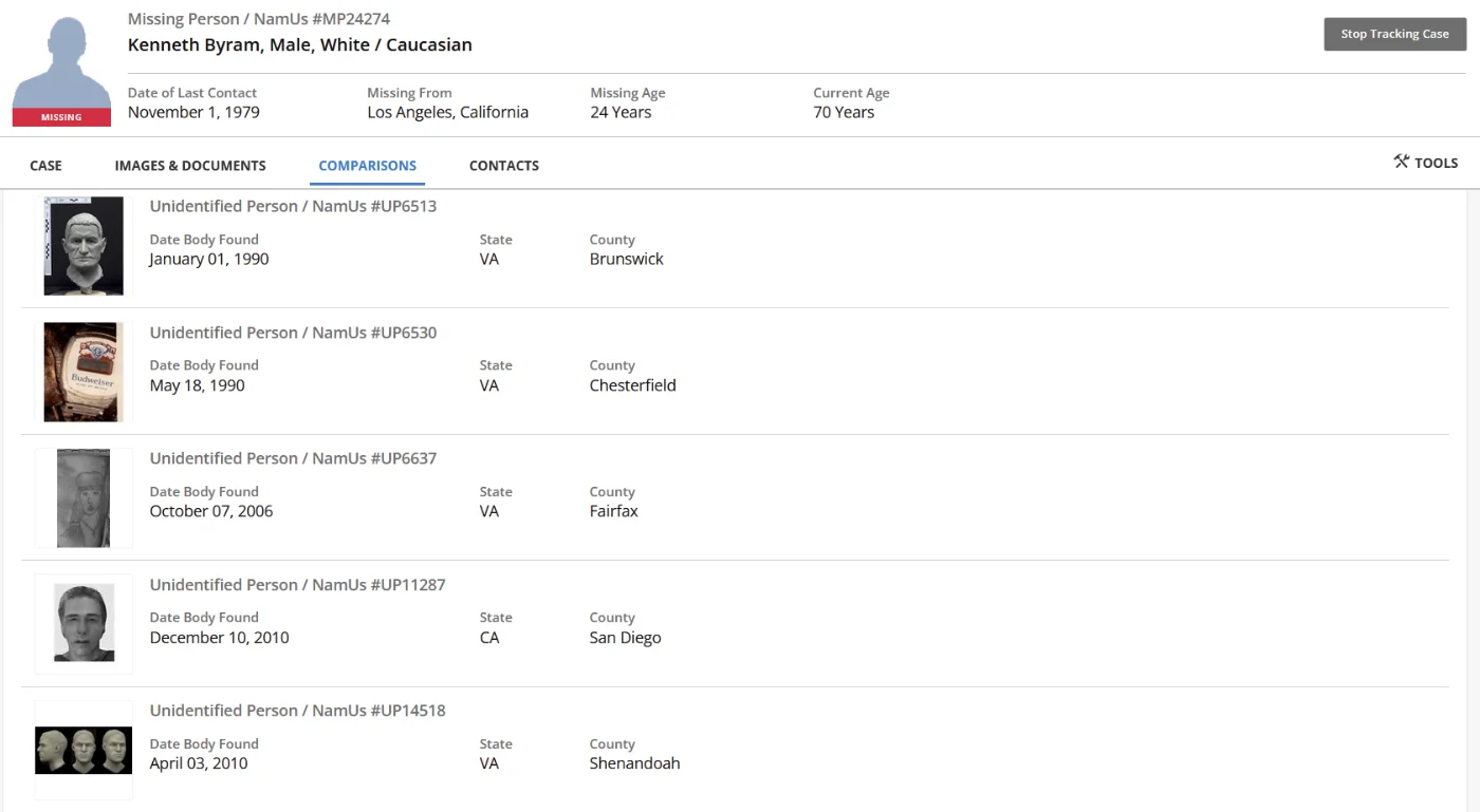 Byram was last seen in Los Angeles, California in 1979. He has never been heard from again. Few details are available regarding his disappearance and her whereabouts remain unknown.