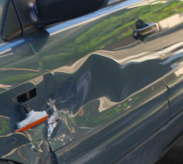 I was looking at the damage to Kiely's SUV again, and the dents are puzzling.