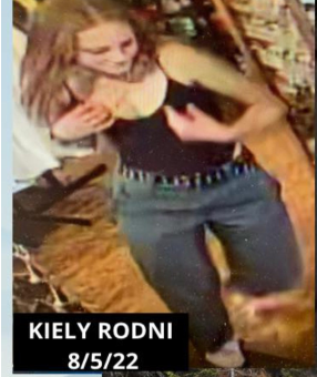 From your article: The picture shows Kiely in a black bodysuit, green pants and black Vans shoes as she stood among racks of apparel and other merchandise.