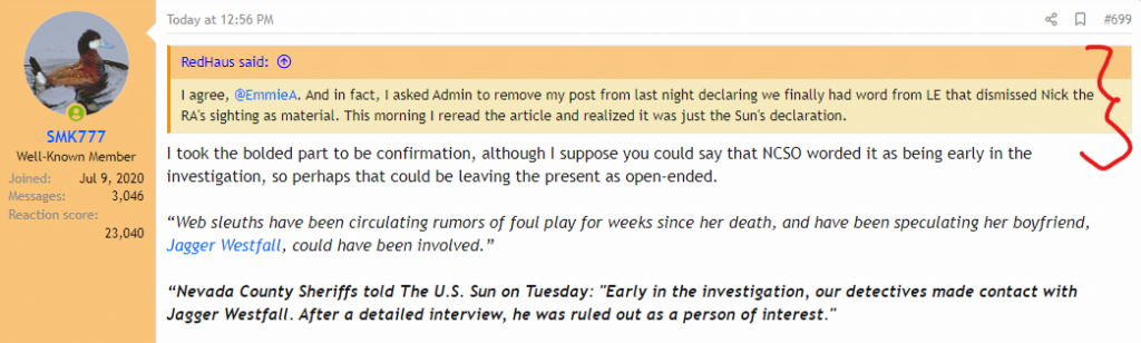 Tracing back to my post where I think this started, I simply stated the SUN article did not say LE had dismissed the Nick RA Guy story to AWP. The SUN article just describes the Nick RA Guy story from the beginning of the 9/2 AWP video.