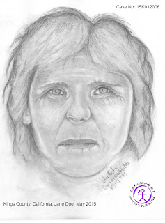 On Wednesday, May 13, 2015, Deputies received a report of human remains located along the 42000 block of 6th Ave in Corcoran. Kings County Sheriff's Detectives took over the investigation and verified the presence of human remains. The remains of an unidentified female adult were located wrapped in a tarp and dumped along 6th Ave near the Homeland Canal in southern Kings County approximately 15 miles south of Corcoran and 5 miles north of the Kern County line. The remains were in an advance stage of decomposition and it appeared the body had been deceased for several months. Due to the advanced stages of decomposition, detectives were unable to recover any fingerprints or any other identifying characteristics. The victim was wearing a light colored, horizontally stripped t-shirt, black loose-fitting yoga type pants, and Depends type underwear.Over the past few months, Kings County Sheriff's Detectives have been reviewing missing person’s cases throughout the state in an attempt to determine the identity of the victim, but have been unsuccessful in positively identifying her. The victim's DNA has also been uploaded into the California Department of Justice database for missing persons and there have been no matches up to this point. A forensic anthropologist conducted an examination of the remains and determined the victim is an older-adult female, of European decent, well over 45 years and most likely well over 60 years old. The victim may have been between 5-foot to 5-foot 6 inches tall and likely had gray or graying blond hair. The victim had no teeth and it appeared she was prepped for a full set of upper and lower dentures; however, no dentures were located. The anthropologist also determined the victim had severe osteoporosis and believes if the victim was mobile, she would have likely been hunched over. However, there's a good chance the victim was bed-ridden. The anthropologist also noted an old fracture of the nose which resulted in a slight skewing of the nose to the left. Additionally, an old fracture of the pelvic area was noted possibly due to an impact to the pelvis, possibly indicative of significant trauma earlier in life. Based on the condition of the remains at the time of the anthropologist’s examination, the anthropologist believes the time of death to be somewhere between six weeks to one year. The estimated time of death is somewhere between May, 2014 and April, 2015. Up to this point in the investigation, Detectives have been unable to identify the victim. Subsequently, Detectives reached out to a non-profit organization, “Can You Identify Me?” to have a facial reconstruction completed. Jane Billingham, the forensic art program manager completed the reconstruction during a live forensic art exhibit at the Mob Museum in Las Vegas, Nevada. Anyone with any information regarding this case, is urged to contact Detective Weimer with the Kings County Sheriff's Office with any of the following methods:(559) 852-2804 - Desk(559) 362-1758 - Cell phone and text [email protected] More information regarding Can You Identify Me can be found at www.canyouidentifyme.org.