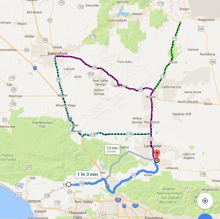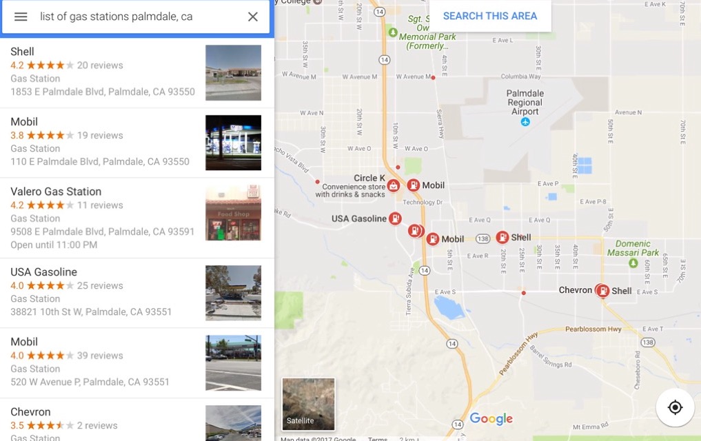 The family just needs to get people to every gas station at the highway intersections in Palmdale, and get video of her gassing up or buying something, or just parking. We need to see which way she left, then get some recon on the ground and in the air. If she had a car accident, she could be stuck but alive. Time is of the essence.