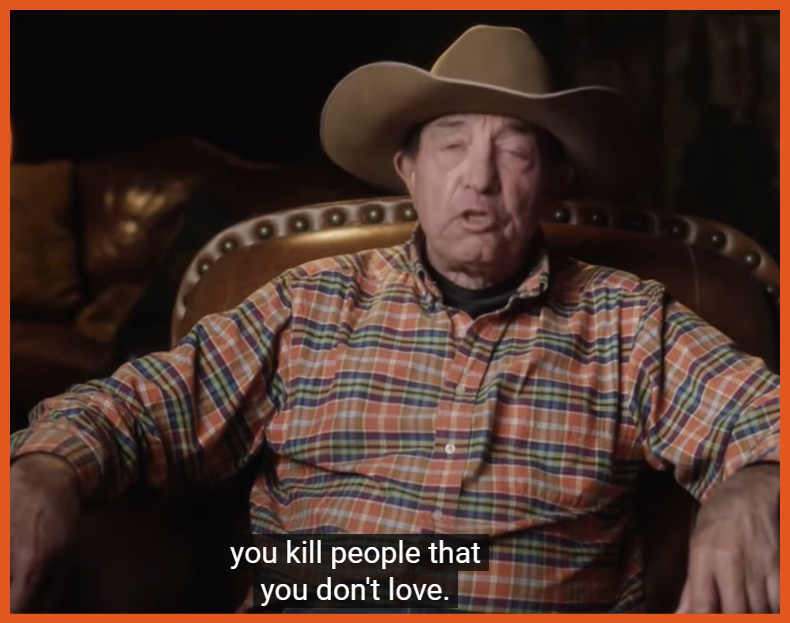 Per Keith Harper-- "Honestly, you don't kill people you love. You kill people you don't love. (at the 1:57 mark of video)