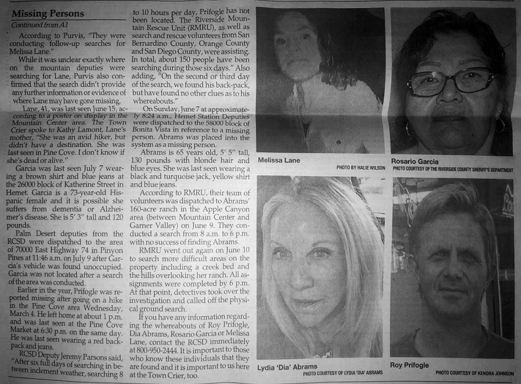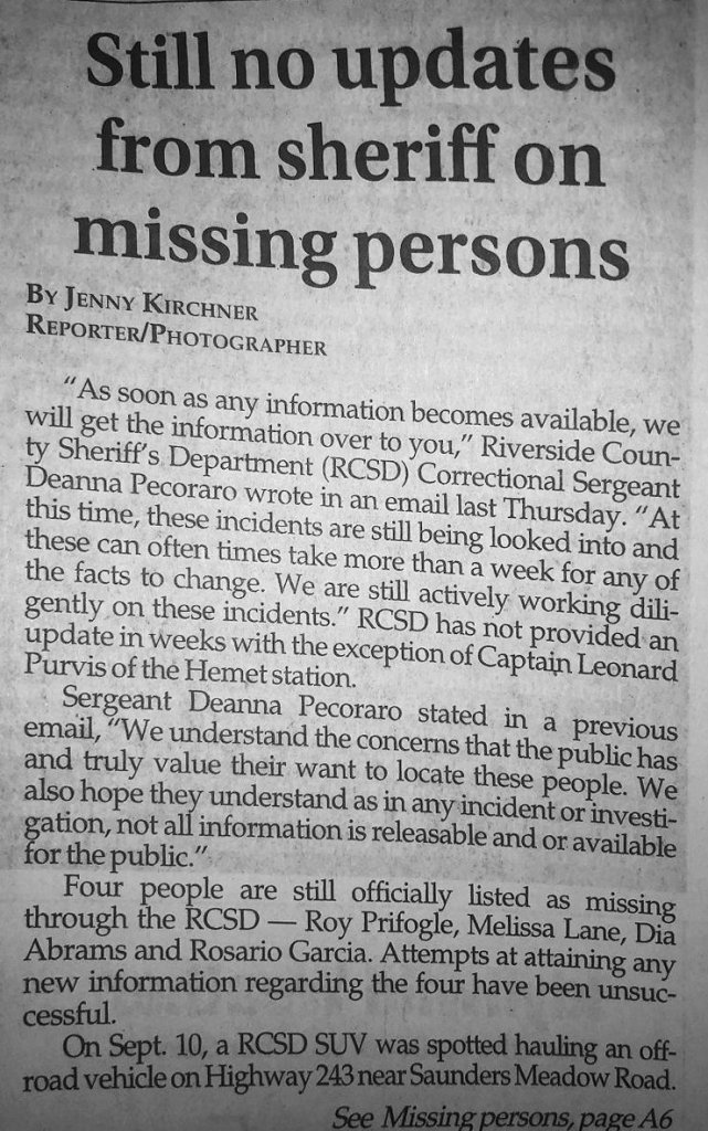 She is missing and gone, and this is basically being investigated as a Homicide by LE, but she has
