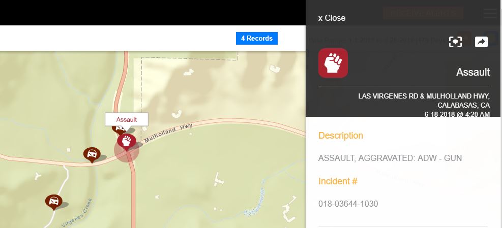 7. 6-18-18 at 4:20 a.m. Shots fired at a Tesla? at intersection of Las Virgenes and Mulholland Highway. https://www.websleuths.com/forums/attachments/crimemapping-jpg.137206/