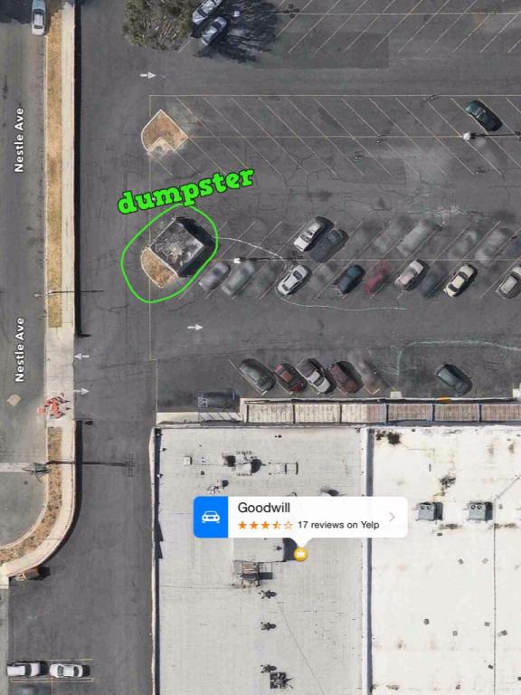 Ok, so finally here are the pictures of where the phone was found. It was in what the media called a planter in front of a dumpster. It is directly behind GW and you can like drive around it...it is literally in the center of the parking lot. Margarita, in one picture you can see down the side of the building..you would have to walk outside the GW door, down the sidewalk and all the way around the building. You can also see just how big that back lot is. I think if the phone is hers, someone meant to throw it in the dumpster and missed. Of course, it could have been picked up at the other end of the parking lot by a homeless person or anyone...maybe there was a lock screen and they couldn't open it, in a fit of anger, they stomped on it. Not sure. Hopefully I can upload pics because I failed the other night...OK can anyone fix these? I am having horrible computer issues and hate to have them all sideways, geez.
