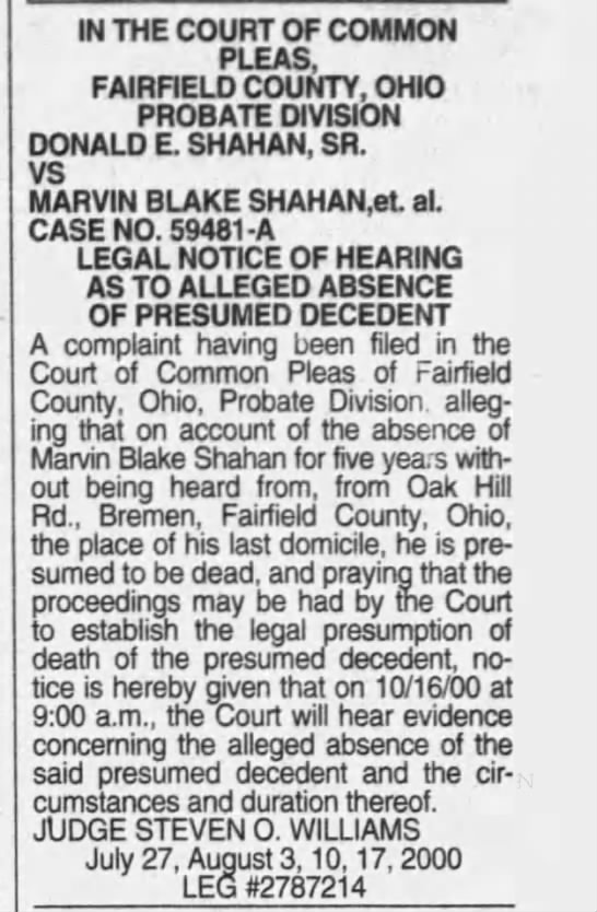 Missing Person / NamUs #MP51388Marvin Blake Shahan, Male, White / Caucasian