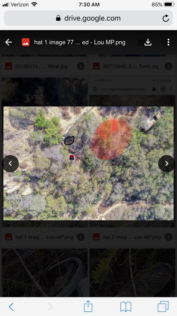 Thank you for posting this. I thought the red color would pop much more than it does. It is really hard to see even with the high resolution. It looks like it it is right below a cement run-off of sorts? Anybody remember whether it rained sufficiently between the time he went missing and the drone picture being taken? If so, I guess his hat could have been flushed down along the run-off area and then the tree trunk/shrubs as shown in the picture. If there wasn't any rain in that time period I guess it could mean he walked along the run-off? I would also assume that he couldn't be far from that location and we should look at the surrounding pictures.